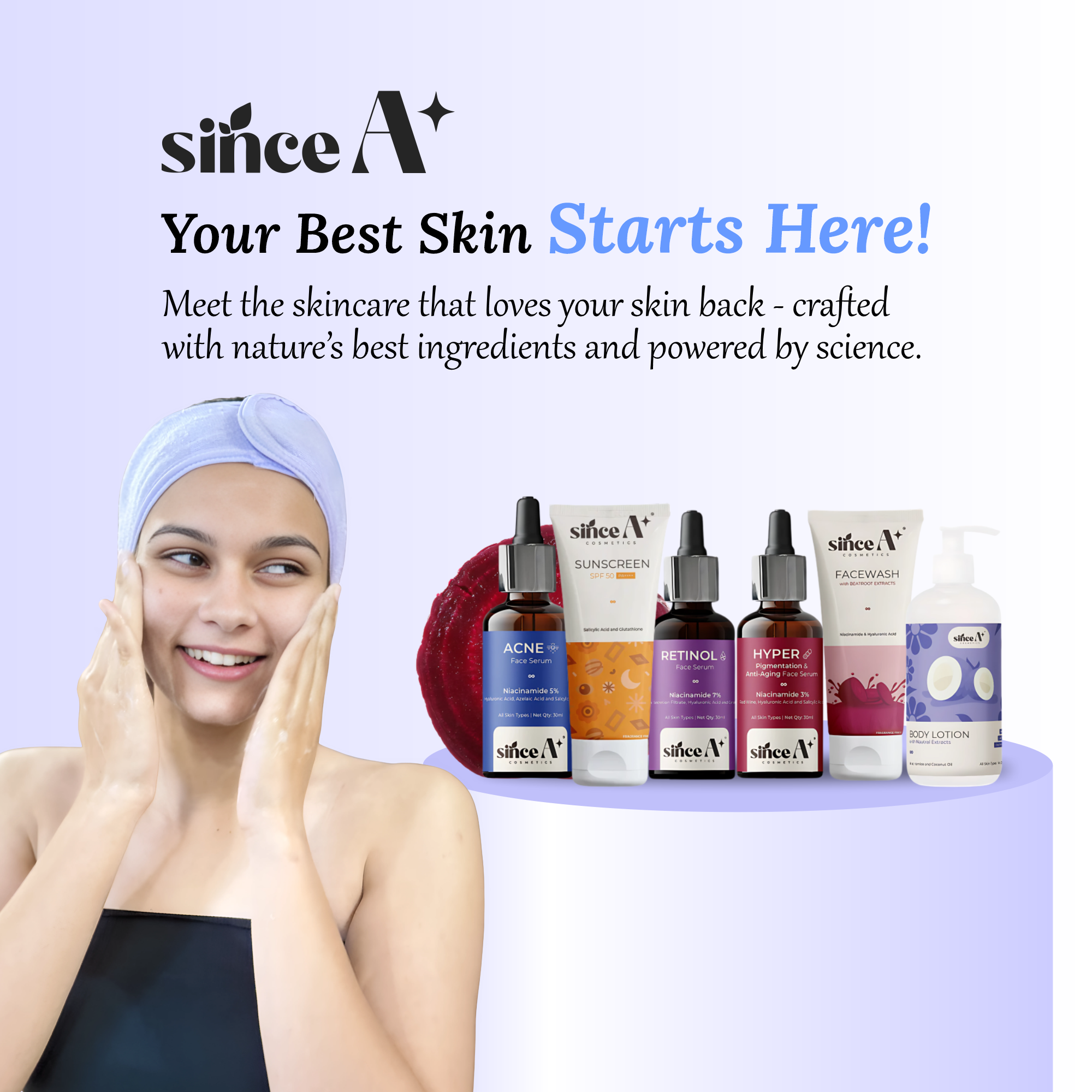 At Since A+, we believe skincare should be simple, effective, and kind. That’s why our products are crafted with purpose, blending the power of nature and science to give you real results without the fuss.